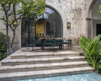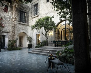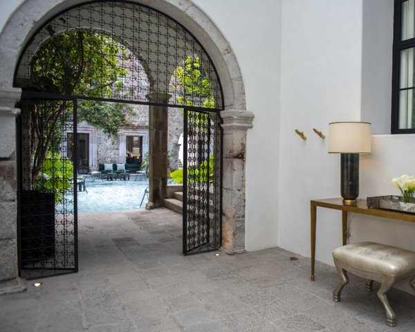 Walking into Casa Garita from its scenic historic street is a revelation. The modest door opens to reveal a spectacular open courtyard surrounded by the property’s original 18th century hacienda-style structure with elegant pillars and tall arches. This historic structure has been seamlessly integrated with new construction in the back of the property to create a home of impressively elegant proportion.