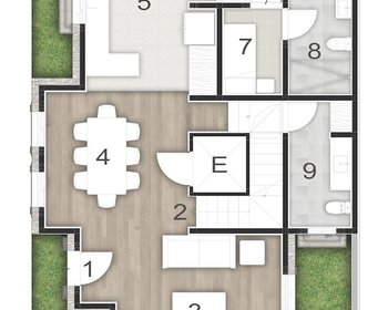 Residence 5, is the second closest to the Organos street with beautiful landscaped access that lets you discover this secret behind the door. The ground floor features, living room adjacent to a private patio, dining room and large kitchen, elevator and half bath. Complete with staff quarters and a storage space.