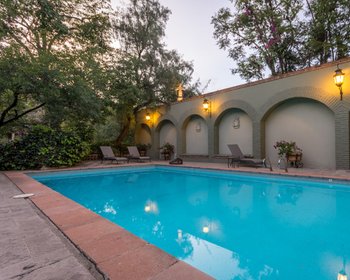 Nestled in the mountains, northwest of Mexico City, La Puertecita rises among the beautiful colonial homes, cobblestone streets, and church spires of one of Mexico’s oldest colonial towns. Cradled within San Miguel de Allende, this sanctuary boasts 9 beautifully appointed suites some with private patios, Jacuzzis and garden bathrooms, a dining terrace with canyon views, space for gym, office or spa, spa and two meeting rooms, a special event space for your private or larger parties, one swimming pool, landscaped gardens, paths and fountains, private parking for 6 cars. This house, also known as La Puertecita Boutique Hotel, ranks among the best Hotels in Mexico by Best Green Hotels, and is a AAA Four Diamond Award-winning resort, a member of Preferred Boutiques and of Hoteles Club de Tesoros de Guanajuato.