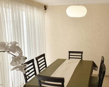 On the ground floor it has a living room, dining room, kitchen, 1/2 bathroom, and service patio. (Equipped with AC mini-splits).