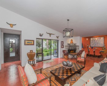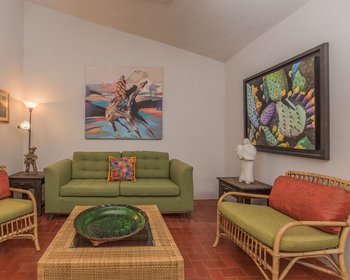 A large family room with a cozy fireplace makes this space perfect for relaxing. The second bedroom updated to perfection has its own small patio, office space, and ensuite bathroom. Just off the dining room area you will find the stairs that access the private one-bedroom Casita with its own kitchenette and ensuite bathroom.