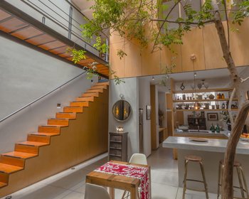 Living kitchen and dining area are all light filled by a dramatic skylight, giving the sense of the outdoors being inside. one of Renero's trademarks. Off the kitchen is a flexible den which can double as a third bedroom since it has its own full bath. The dinning and living room have a visual connection to the green filled courtyard which features a plunge heated pool and built in benches, a private oasis to unwind from the business of the day. The second floor will show you the guest bedroom which has beautiful western light diffused by a wood trellis/balcony, this room also showcases one of the architects trademarks, a series of wood shutters that look down into the main level, giving the room a sense of openness or added privacy, depending on the time of day. The hallway will lead you down to a cozy den, perfect for afternoon tea. Step now into the master bedroom with its own morning sun terrace and spacious closet and bath. The roof top deck is the perfect place to gather with friends and enjoy the sunset.
