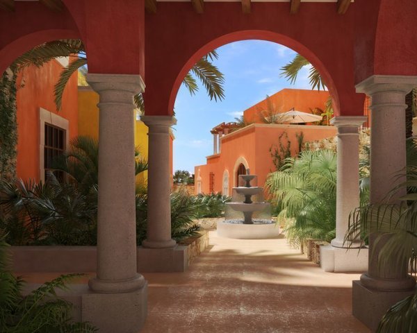 The Villas are located around colonial-style arches, forming two atriums with fountains that invite relaxation and contemplation and give the complex its name and character. The main atrium houses a garden in the center and the secondary atrium, a multipurpose area with lounge-type rooms, with bathrooms and kitchenette, and a terrace in front to be able to live with friends and family.