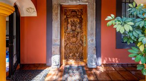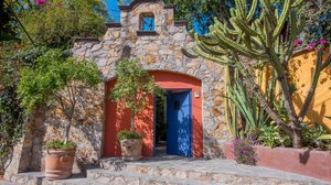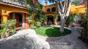 From the street, Casa Condesa looks large, solid and gracious, Trees, flowers and organos cactus surround the manicured perimeter. Up three steps and the blue street door opens to a park-like garden with leafy, shaded paths, quiet spots to just sit and 2 soaring Jacarandas.