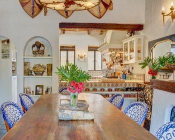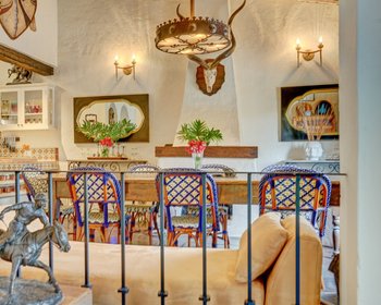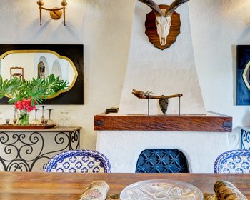 A manicured front garden serves as a transition from the street to the vestibule. As you enter the property, a nicho is the perfect focal point to showcase a beautiful art piece. Throughout the house beautiful wood ceilings and Saltillo tile floors integrate and give continuity to all the spaces.