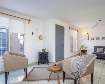 On the first floor, you have a well-light living room and sitting area, dining area, kitchen, half bath, and a service patio. The second floor has the main bedroom with a walk-in closet and a full bathroom and two bedrooms and a full bathroom.