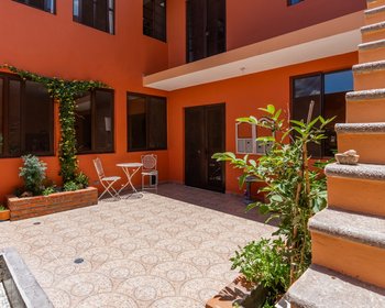 The spacious outdoor rooftop terrace has spectacular views overlooking various churches in San Miguel de Allende perfect for having dinner with friends while watching the sunset.