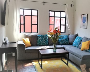 Bright & cheery, this 2 story, 3 bedroom, 3 bathroom house is located in the quiet and secure El Cortijo neighborhood, just minutes away from La Gruta Hot Springs and the village of Atontonilco.