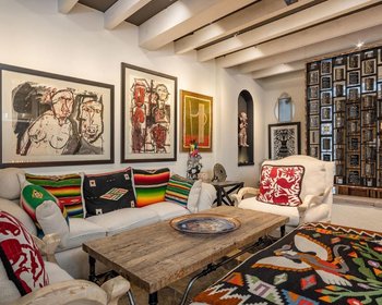 Upon entering the doors of this Eclectic -Santa Fe- residence, you are immediately greeted by a locally inspired hanging art installation; providing a veil of privacy from the main living room-open-concept informal-dining-room- colorful kitchen area. The primary home consists of two bedrooms, 2.5 baths (both on second floor,) with private access to the rooftop terrace where downtown views are waiting to take your breath away.