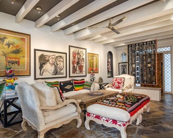 A nourishing reprieve amongst a tropical garden featuring two guest casitas with separate entrances sprawled across a double-lot with state-of-the-art endless pool and private gym. You’ll often see hummingbirds and butterflies on this family estate compound.