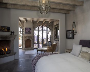 Casa Sereno is one of the finest homes to come on the market in San Miguel. An original Colonial home recently restored and expanded, this home has the best of the old with the most sophisticated new technology and design. Once inside the home, the space opens to a tranquil courtyard from which one can see the Colonial architecture surrounding the Jacaranda tree. Passing the carved stone fountain, one enters the home's entry seating area with fireplace.