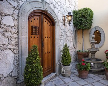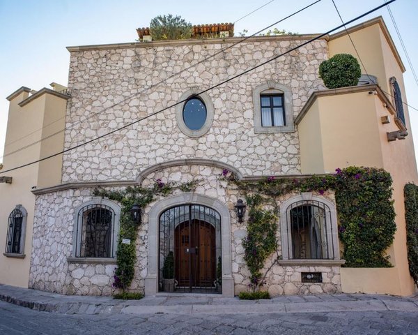 The large living and dining rooms look onto a spacious outdoor sala, all facing the stunning gardens. The European style kitchen has a center island, beamed ceiling, and breakfast nook. Through the garden, past the downstairs ensuite guest bedroom, is a charming casita, with it's own patio and street entrance. Upstairs is a beautiful master bedroom with walk-in closet, another guest bedroom with ensuite bathroom, and an office. These rooms access the spacious covered terrace, which overlooks the gardens. Upstairs again is one of the most beautiful roof terraces in San Miguel, with covered seating, a fountain, and direct Parroquia views. With garage, wine tasting room, and gym, Casa Bella is truly a great find and is offered fully-furnished.