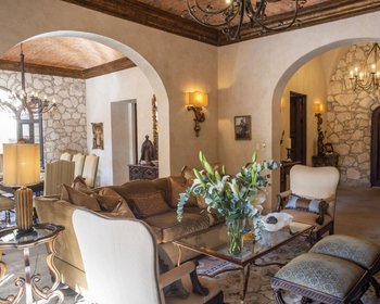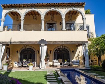 Casa Bella is a beautiful offering in the very best location in Guadiana. Located on a large corner lot, this home built with the finest materials and accessories. The home is clad in white stone and stucco and is oriented to enjoy the beautiful formal garden with decorative fountain and hot tub.