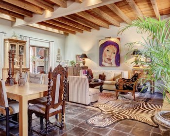 Casa Joaquin is an exceptionally beautiful home in the style of an historic hacienda with all the modern conveniences: ample closet and storage space, custom-designed lighting, laundry facilities, water purification and filtration system, comprehensive alarm and security camera system, front door parking plus interior carport, artist studio, terrace with hot tub and outdoor shower, and more. This chic designer home is being offered furnished.
