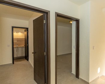 Beautiful cantera flooring leads you upstairs to the Master bedroom, which boasts a very large walk in closet and en-suite bathroom with marble countertops, modern sink and large shower.