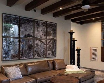 The floors throughout the home are matte-finish Santo Tomas marble. Key architectural details include antique Cantera stone niches in the walls recovered from a temple in Rajasthan, India. There is also a separate bedroom/office with an ensuite bath on this level.