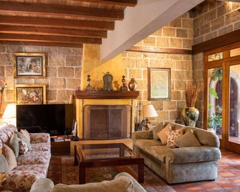 The home has contemporary colonial architecture with an expansive front terrace with multiple areas for outdoor seating. The porch is covered with rare cedro wood from Chiapas.