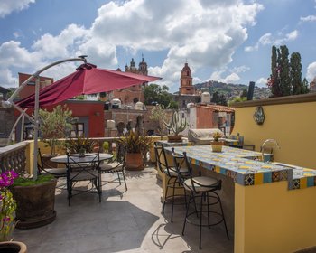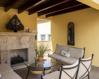 Casa Biblioteca is a complex of six luxurious residences, each with exquisite Modern-Mexican decor, air conditioning, heating, full kitchen, laundry, and luxury bathrooms. These perfect suites share a beautiful spacious terrace, where one can enjoy magical sunsets, get cozy next to the warmth of a fireplace, and admire the Parroquia and other landmarks of this UNESCO recognized town. Some suites also have access to their own private terraces.