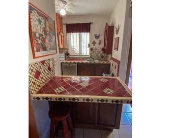 As you walk through the front door, you enter a very spacious open concept living room with a 13 foot wood beam ceiling and Talavera tile floors. The kitchen is well equipped with a water filtration system, dishwasher, large pantry, and large laundry area with washer and dryer. The master bedroom offers plenty of space and an ensuite bathroom and the guest bedroom has custom built cabinets providing plenty of storage space.