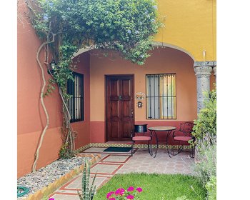 Beautiful house with 2-bedroom, 2-bathroom is located in the well-maintained community of Villas de Allende, within walking distance of almost anywhere in SMA and very close to restaurants, supermarkets, hospitals, gyms, pharmacies, etc. The community has 24 hour surveillance. hourly security, electric fence, manicured gardens, a water lily pond and a swimming pool with a rest area. The maintenance crew picks up trash every day (except Sunday), maintains the grass, plants, and sidewalk, and even paints the front of the house (as needed).