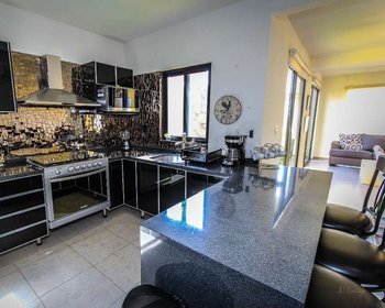 The kitchen is comfortable and easy to work in with tons of built-in storage. The living and dining areas are spacious and open with lots of natural light from the wall-to-wall glass doors that open to the back gated patio and jacuzzi. The bedrooms are roomy with walk-in closets, balconies and en-suite bathrooms on the second floor. The third-floor rooftop terrace boasts 2 sections divided by sliding doors. The areas (living, kitchen and sun lounge chairs area) include retractable shade roofs and share a guest bathroom.