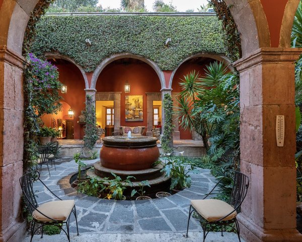 There are five bedrooms in the house, including two spacious master suites with living rooms, en-suite bathrooms, and access to two courtyards. The third bedroom, named the "honeymoon suite," offers direct views to the Parroquia, with access to a series of dramatic rooftop terraces. The home has two additional guest bedrooms, each with ensuite bathroom. Perhaps most incredible are the rooftop living spaces of the home. With luxurious landscaping and fountains, the terraces provide perhaps the best views in San Miguel. There is a covered terrace area with seating and wet bar, adjoining open terraces with seating areas and spectacular up-close views to the Parroquia. Casa Diana is truly a magical residence, perfect for the discriminating buyer.