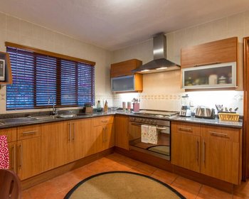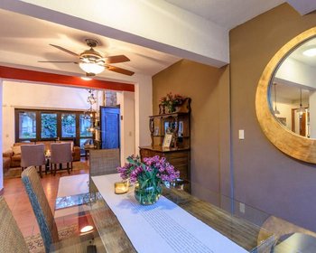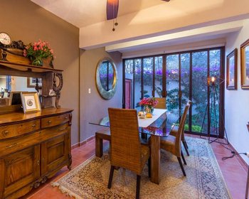 The house has High ceilings with wooden beams in the living room and dining room. Kitchen with granite countertops, pantry, laundry room and service unit with full bathroom. House with lots of light and large windows. It has a fireplace in the living room and a covered terrace that overlooks the gardens of the complex. It also has a terrace that overlooks the San Miguel dam.