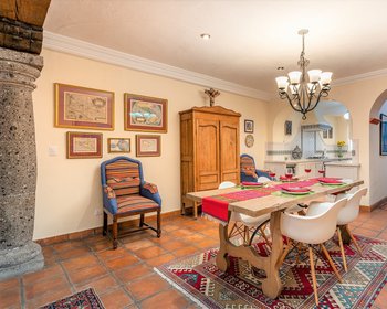 Located at the end of a no-through-traffic street adjacent to one of Centro’s most popular pedestrian-only walkways—connecting to neighborhood restaurants three minutes away—this home proves an ideal location. The Centro area of historic San Miguel de Allende always proves most popular with residents, especially quiet no-traffic locations under a 10-minute walk to the Jardin, or town square.