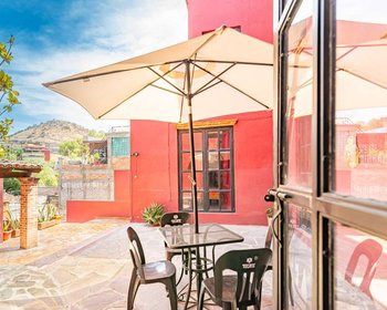 A wide staircase leads you to the rest of the house. Two spacious bedrooms, each of them with a large balcony with panoramic views to San Miguel, including the famous Parroquia is on the sight. Those bedrooms share a bathroom with a bathtub.