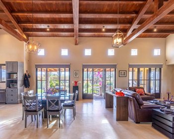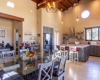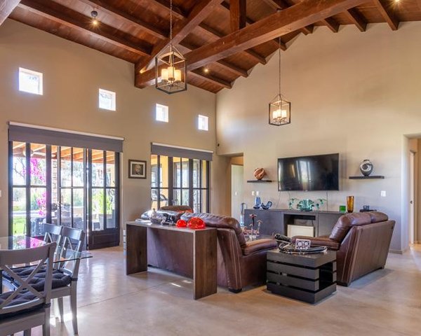 Enjoy the lifestyle that Viñedos San Lucas in San Miguel de Allende has to offer in this beautiful home. The home was designed so that every room has access to light and views. The experience is quite special when you enter into the large, one-level living home with high beamed ceilings overlooking the covered deck and beautifully landscaped garden, complete with firepit and jacuzzi.