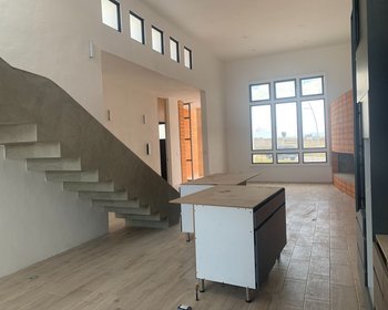 A short 10 minutes from the city center, in the Cumbres of San Miguel development, you can find this beautiful house. It is designed on a single floor and has two bedrooms, two full bathrooms, and a double-height space that houses the kitchen and dining area. On the opposite side of these spaces is an escalator that leads to the roof garden, where you can relax and enjoy the view.