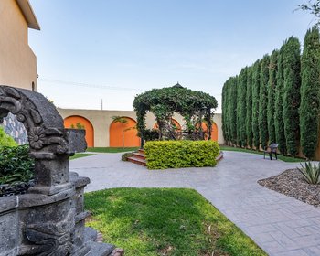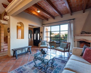 Stunning views of Downtown, sunrise and hot air balloons from your private balconies.Beautifully landscaped common grounds in a secure, private and peaceful complex of just 17 homes, with a lighted gazebo.There is ample secure parking for 2 cars, CCTV cameras. security and electronic gates.The house has 3 bedrooms and 3-1/2 bathrooms and many upgrades.The kitchen opens to a large living room with fireplace and a small patio with a fountain.The upstairs master bedroom has a soaking tub. whirlpool, fireplace and private balcony. The second bedroom on the second floor also has a large private balcony. The downstairs bedroom has a fireplace. All bedrooms have ample closet space. The Historic Center is an easy flat 15-minute walk. minutes. Built In: 2018 Cable Internet Cable TV Pet Friendly Walled/Fenced Boveda Ceilings