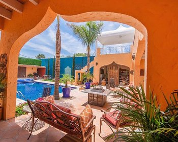 Beautiful Casa Oasis SMA is the well-known luxury boutique hotel in the front of the prestigious Los Frailes neighborhood. This Moroccan inspired masterpiece boasts 9 luxurious rooms, a five star massive swimming pool, gourmet kitchen, formal and casual dining spaces and Hollywood fashioned outdoor living galore! Lush gardens, centrally located and a consistently strong rental history make this home the perfect Mexican retreat!