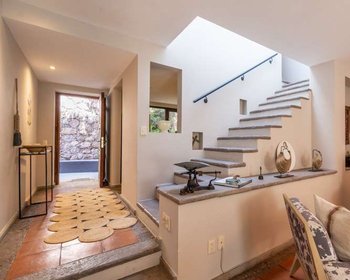 Located inside “Los Arcangeles” a one of a kind gated community in the heart of San Miguel de Allende, México. Nestled within Centro, this exclusive hillside development offers townhome living at its absolute finest. Immerse yourself in the charm and elegance of this vibrant city while indulging in the utmost comfort and sophistication.As you step inside this furnished turnkey unit, you are greeted by a great room on the first floor, tastefully designed with modern Mexican flair. The living and dining area seamlessly flow, creating an inviting space for entertaining guests or relaxing in front of the fireplace. An expansive terrace—one of the largest within the development—beckons you to embrace the enchanting outdoor lifestyle that San Miguel de Allende is known for. Peaceful and serene, unwind to the sounds of nature as you savor delectable flavors prepared on your private outdoor grill and kitchen area.Every detail within this home exudes luxury and refinement. Flooded with light, the open staircase elegantly frames the space, guiding you to the upper level. Here, an ample en suite master awaits, complete with a private terrace offering captivating views of the city and the shimmering pool. Warm yourself by the fireplace, indulge in the lavish travertine master bath, and luxuriate within the walk-in closet adorned with meticulously crafted built-in cabinetry. A second bedroom with a full bathroom is perfect for visiting guests.The kitchen features marble countertops and an oversized window that overlooks peaceful green palms. The kitchen conveniently transitions into a spacious laundry area and abundant storage space, perfectly designed to accommodate an owner’s closet should you choose to rent out this exceptional residence.Your comfort and security are paramount at Los Arcángeles. This exclusive community offers one deeded parking spot, ensuring convenient access to your home at all times. The low homeowner’s association fee encompasses an array of amenities, including a sparkling swimming pool, a relaxing hot tub, a BBQ terrace for gatherings, a clubhouse for social events, and 24-hour security. All these conveniences are just a short stroll away from the heart of San Miguel de Allende—the Jardin—where vibrant cultural experiences and culinary delights await.Don’t miss this incredible opportunity to embrace a lifestyle of comfort and sophistication in San Miguel de Allende’s most sought-after location. Schedule a private tour today and let us guide you through the magnificence of Los Arcángeles.