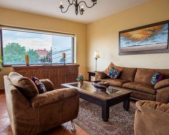 Casa La Vista will surprise you with its generous and illuminated spaces. It is located in one of the most sought after areas due to its beautiful views of the San Miguel Valley, Ojo de Agua, and has several terraces from which to enjoy the sunset.On the ground floor, it has a garage for two cars, as well as a cozy hallway with a fountain. The first level has an open and spacious layout, a dining area with large windows with beautiful views that connects with a small living room and a large terrace. Here is also the kitchen, fully equipped with a dishwasher, refrigerator and stove. It also has a water purification system.Going up another half level, there is a study with a nice window that overlooks the garden. On the second level are the two bedrooms, the main one is very spacious and has its own terrace with a panoramic view. The second bedroom is also spacious and has its own balcony.It is a very complete home, it has everything you need, spacious but at the same time charming, cozy, it does not overwhelm. The visit will have been worth it. Covered Terrace Patio