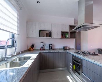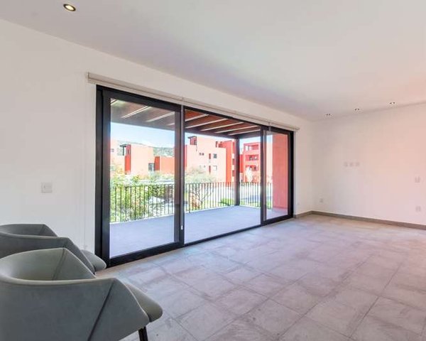 This apartment is located in the Residencial Punta del Cielo subdivision.New construction and ready to move in.It is located inside a preserve with a pool and common terraces.Apartment on two levels with a large terrace, with barbecue, sink and connections for electrical appliances with spectacular views of the mountains and dam, it has a half bathroom.The apartment has a large open kitchen, living room and dining room with a very nice terrace, a guest bedroom with a closet, modern finishes and a full bathroom separated from the bedroom, very bright. The main bedroom has closets and its own bathroom, double sink and lots of natural light.Punta del Cielo is located a few minutes from the center of San Miguel de Allende and access to fast roads and close to shopping centers and hospitals.Excellent option to live full time or a weekend home.Call today to see this property!