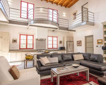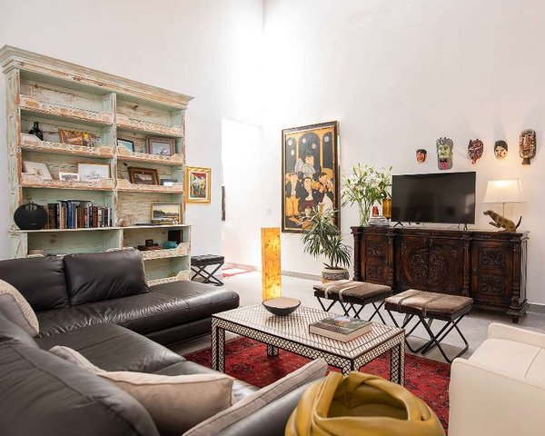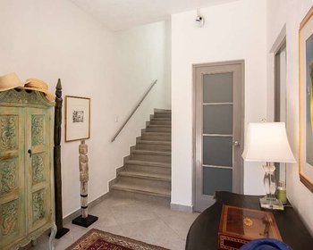 Designed in the style of the “Bauhaus Movement”, this bright contemporary offers a bright and breezy interior bathed in light throughout the day. Entry is thru a formal foyer which leads to the garage and the approximately 900 Sq Foot Great Room with 22 ft ceilings and a conversation worthy cantilevered “mezzanine” over looking the large space. There are two air-conditioned and large primary bedrooms, both with dressing rooms and baths, as well as a separate and private apartment equipped with kitchen and bath. 2 staircases lead to the second floor, with an extremely large “terrazza” offering 300 degree views that are no less than stunning on the third floor, including amazing views of the centro. Unusual, livable and large spaces make the dwelling ideal for gracious, yet informal, living. You will not find a more dramatic home than this one of a kind San Miguel contemporary.