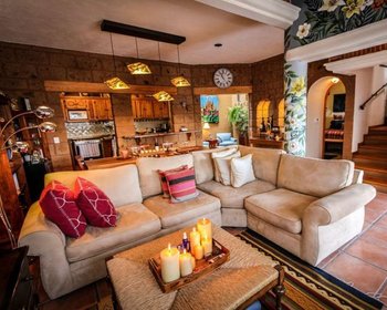 Casa Miraflores offers a million dollar view.This home features 3 bedrooms and 3 bathrooms. The main floor with a large living/dining room. The integrated kitchen with granite counter tops and excellent appliances. In addition, there is a reverse osmosis water faucet in the kitchen that does an excellent job of purifying the water.You will be able to enjoy the outdoors from the inside as it has a motorized retractable glass roof. A large downstairs bedroom with en-suite bathroom and fireplace. A mini mural painted by one of San Miguel's talented artists adorns a pillar and a partial wall.Upstairs there are two bedrooms, each with en-suite bathrooms and balconies and one with a fireplace. From the balconies, you can enjoy a breathtaking view of San Miguel de Allende and the renowned Parroquia. Laundry room with new washer/dryer.All plants inside and outside the house stay!Furniture is available for sale separately. Home security system.Secure parking, inside the Residencial and automated entry and exit.Casa Miraflores is located in Residencial Miraflores. It is a gated and secure community with 17 villas. It has common areas with grills and gardens that are maintained daily. Skylights Security System Patio Walled/Fenced Boveda Ceilings