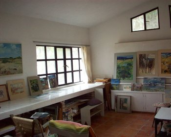 The main house, which is placed on the beautiful grounds and surrounded by matures trees and gardens, has one bedroom with a large living area, kitchen and dining room. Connecting the apartment to the main house is a large studio/office area. The apartment has two bedrooms, two bathrooms, kitchen, dining and a large living area. In addition there is a small guest casita, and a large art studio.