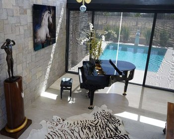 Welcome to Villa La Rocca, an enchanting oasis nestled amidst the vineyards of Viñedos San Francisco, San Miguel de Allende. This extraordinary residence boasts a grand master suite with a luxurious ensuite bathroom featuring a Japanese soaking tub, perfect for unwinding after a day of indulgence. Two guest bedrooms with ensuite bathrooms offer panoramic views of the endless acres of vineyards, creating a serene retreat for your guests.The villa's interiors are a testament to Michael La Rocca's exquisite design, with European-style gardens, water features, and four beautifully appointed fireplaces that exude warmth and elegance. The complete butler's pantry and separate kitchen are a culinary enthusiast's delight, providing ample space for entertaining and hosting lavish dinners. The outdoor oasis is a haven of relaxation, featuring a spectacular swimming pool that overlooks the vineyards and the majestic Los Picacho mountains. Imagine lounging by the pool, sipping on fine wine while taking in the breathtaking vistas of the surrounding natural beauty.Beyond the villa, the Viñedos San Francisco community offers 500 acres of picturesque park and vineyards, perfect for leisurely walks, invigorating runs, or horseback riding at the nearby equestrian stables. Indulge in the culinary delights of the three exquisite restaurants within the vineyard, offering a cross-section of European and South American cuisine.Villa La Rocca presents an unparalleled opportunity to own a piece of paradise in the world-renowned wine country of San Miguel de Allende. Experience the epitome of luxury living amidst the beauty of nature, where every day feels like a dream come true. Your forever home awaits in Villa La Rocca."
