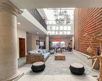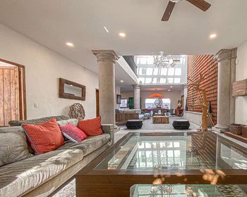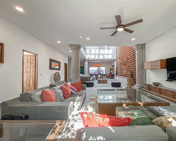 The house, at street level, welcomes you by opening the door to an immense space full of natural light that houses space for two living rooms, the dining room and the kitchen on one side without any obstacle between them that limits the freedom to wander. throughout the space, and in the middle of all this space, a double-height ceiling that allows natural light to highlight the brick placed in the Wall in such a way that it looks extraordinary, ending on the floor with a fountain with its three cantera Stone ornaments where the water comes out splashing happily producing an environment that will undoubtedly produce in you immense Inner Peace, and in the background a small patio or terrace with tempered glass doors that when opened produces an extraordinary air circulation ventilating the entire space from the entrance to the patio wich has a covered area that is supported by two stone columns that adorn the space inviting you to go out and enjoy the outdoors. The kitchen, as can be seen in the photographs, has all the cupboard doors in a totally Old Mexican style with its ironwork handles and its rivets nailed to each door, which without a doubt transport you to other past times of our San Miguel and Our Mexico. And of course, like any well-planned house, it has a very spacious bedroom on the ground floor, naturally lit through a window that will give you the happiness of having sunlight every morning and with a splendid dressing room and bathroom with current modern style where you can see that it has 2 sinks and the toilet is strategically hidden providing necessary privacy, and the shower with its tempered glass inviting you to enjoy the well-deserved daily bath.Going down the stairs, the house surprises us since it has a basement that can be considered as an apartment to rent or as your own offices since, in addition to having access through the house itself, it has independent access from the outside. The space has 2 bedrooms, each with its own bathroom, and a very large space for a dining room and has preparation for what could be a half bathroom and a kitchen.Returning to the ground floor, we now go up to the second level, which welcomes you with a pleasant view of what is the space already described with double height on the ground floor, and you can see the beautiful chandelier and the partition Wall of the fountain, and when you step in it, you find a distributor that can be the intimate family space that also distributes the access to the two bedrooms that are on the second floor. The first of which, of course, with its window with a balcony that illuminates the space and a large closet and a very practical and spacious bathroom and The second bedroom with its window, its beautiful groin vault and its access to that small intimate space where the Jacuzzi is located.As if that were not enough, if you dare to go up to the Rooftop, you will find the acces to the laundry and if you continue, you´ll get to the Roof Terrace, another beautiful space where you will surely enjoy the sunsets in the company of loved ones such as family and friends, since it has, as can be seen in the photographs, a barbecue area, a wood oven, an area to store dishes and utensils and a sink, and of course a spacious half bathroom.