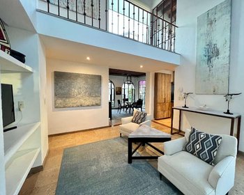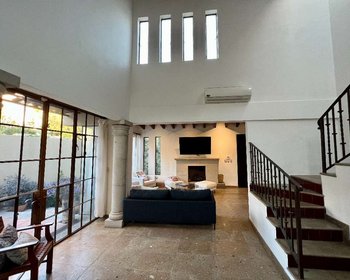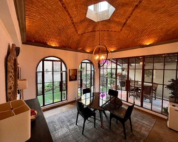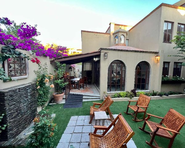 Casa Verano, located in one of the most picturesque neighborhoods within the center of San Miguel de Allende, Colonia Allende, just a few minutes walk from the parish of San Miguel Arcángel, restaurants, supermarkets and convenience stores, specifically it is a small private on 5 de Mayo Street. This great location allows you to experience the center of San Miguel, without the hustle and bustle of the busiest streets.Casa Verano -, has double height in part of the social area, which gives it great spaciousness and natural light, since it also has large windows in the living room and dining room, 3 bedrooms, 2 with a bathroom inside and one with a bathroom . Outside the room, two of them are located on the ground floor and one on the second floor. Laundry room with storage space, garage with electric gate and garden that surrounds half of the house.