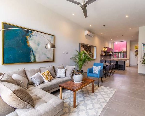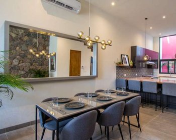 Welcome to a modern masterpiece in the heart of Colonia Guadalupe, the coveted artist's neighborhood where creativity flourishes amidst charming coffee shops, vibrant fruits and vegetables markets, and inspiring art studios—all just a delightful 10-minute stroll from the main square.This contemporary haven welcomes you with a sleek design and a private patio/garden, serving as both a serene retreat and a buffer from the lively street, allowing natural light and ventilation to embrace the living spaces. Step into luxury as this move-in-ready home comes furnished, offering convenience and style in one.The ground level features 13-foot high ceilings and an open layout seamlessly connecting the living area, dining room, and kitchen. The kitchen, a culinary enthusiast's delight, extends to a rear patio, allowing for optimal ventilation and an abundance of natural light. A thoughtfully placed powder room enhances the functionality of this level.Ascend to the second level, where the main ensuite bedroom overlooks the front garden, providing a tranquil escape. A secondary bedroom facing the back patio completes this level, offering a perfect balance of privacy and comfort.Ascend to the third level, where a rooftop with amazing views awaits. Complete with a pergola cover, laundry area, and pre-installed provisions for a kitchen, including water, drain, and gas lines, this space is perfect for entertaining or enjoying the picturesque views of the surrounding neighborhood.Noteworthy features include aluminum double-pane windows and doors, significantly reducing outside noise such as fireworks and contributing to a more comfortable climate within the house.For your comfort, the house is equipped with three AC and heating mini-splits—one for each bedroom and an additional unit for the spacious living area. As a brand-new home, it comes with a one-year warranty, providing peace of mind for your investment.Indulge in the epitome of modern living in Colonia Guadalupe, where artistry meets functionality. Seize the opportunity to make this stunning property your own and relish in the vibrant and creative atmosphere of this unique neighborhood.