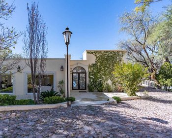 Relax in luxury in this sparklingly bright and spacious, modern single-floor designer home, with plate-glass windows on all sides overlooking lush gardens that feature a mini-golf green and private thermal spring pool. The main level includes two parking areas, three large ensuite bedrooms with walk-in closets, and a spacious open-plan living & dining room with an adjacent kitchen featuring granite counters and luxury fixtures and appliances. The house overlooks a garden level that has a large entertainment and gaming salon with a bar and a stylish covered terrace by the hotspring-fed pool. All this, located on a secure, private gated community of five luxury homes on Calle Pavo in the El Cortijo colonia of Atotonilco just moments from the Dolores Highway “Golden Corridor” and a mere 15 minutes drive to San Miguel’s Centro. Casa Piedra presents a unique luxury home oasis – for a remarkable value. We welcome you to come experience it for yourself.