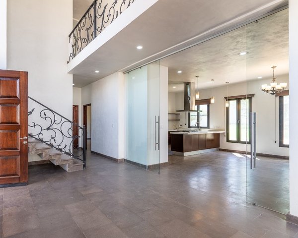 Seamlessly blending timeless elegance with modern comfort, this residence offers an oasis of tranquility while being conveniently connected to the vibrant town nearby.Upon entering, the spacious foyer welcomes you into a world of rich and earthy materials, featuring cantera accents, cantera floors, wrought iron details, and expansive vinyl windows that bathe the interiors in abundant natural light.