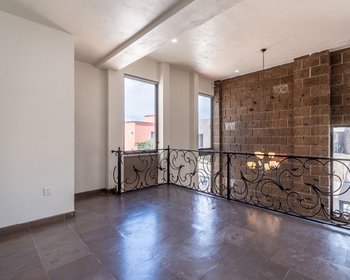 Additional conveniences include a powder room and a generously sized laundry room doubling as a substantial storage area.Ascend the wrought iron staircase to the second level, where a spacious foyer leads to a multipurpose room adaptable to your lifestyle—whether it be an exercise space, reading nook, or a home office. Further, an open area beckons as an ideal entertainment, TV, or family room. Two bedrooms, including a principal bedroom with a charming terrace, and a secondary bedroom of similar size, showcase scenic views of the yard.