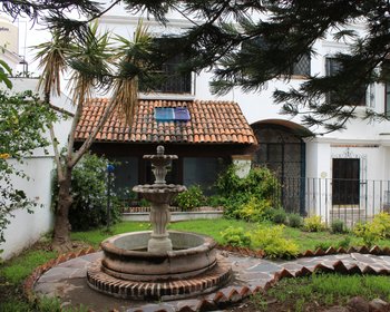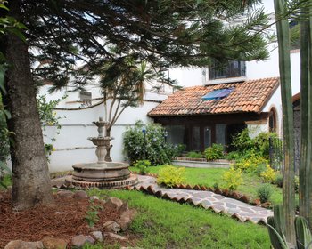 Exterior: The property features a garage and an extensive garden, a true oasis of serenity. Adorned with native trees and cacti, the backyard boasts ample space, a charming fountain, and a majestic 40-year-old walnut tree, perfect for relaxing afternoons in its shade.