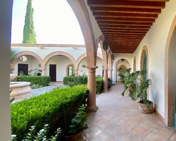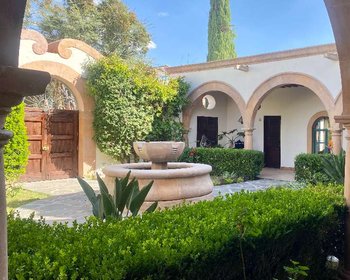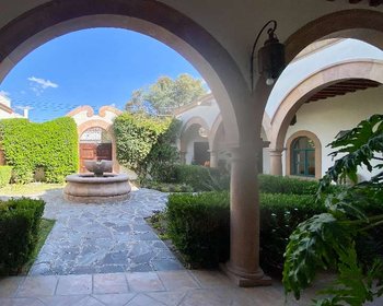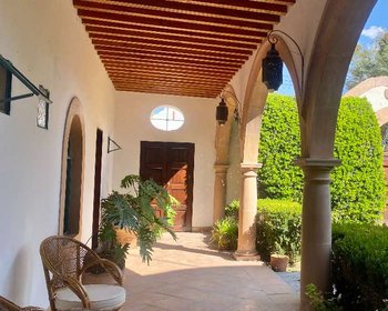 This stunning hacienda style property is located in the quiet residential community of Los Frailes, just minutes away from the UNESCO world heritage city of San Miguel de Allende. It is being offered for the first time since the home was built in the early 2000s. Beautifully designed by a skilled architect who worked on the restoration of many landmark buildings in San Francisco and the historic Cathedral Basilica of St Joseph in San Jose after the California earthquake in the 1990´s, the inspiration for this home is the classic colonial hacienda. It showcases traditional Mexican quality craftsmanship including cantera arches gracing a central courtyard with large fountain, multiple brick bovedas, handmade saltillo tiles, solid caoba wood doors and wood beam ceilings, just a few of the many features found throughout this 7 bedroom / 8 bath + 2 half bath elegant property.