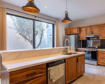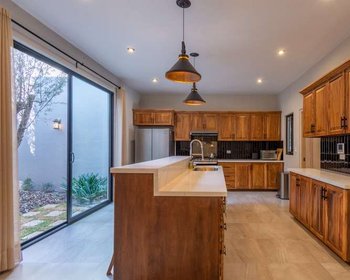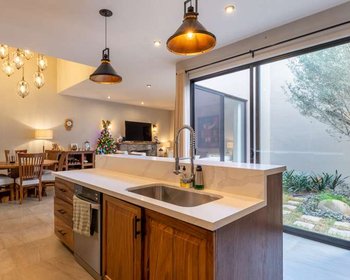 • Interior Design: Contemporary style with warm accents of parota wood and stone.