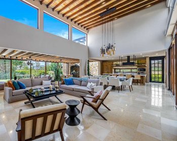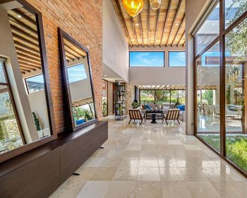 This exceptional property offers convenient, one-level living designed with contemporary Mexican elegance. Three large ensuite bedrooms open onto expansive green areas and your own private vineyard, complete with a gentle stream passing through.